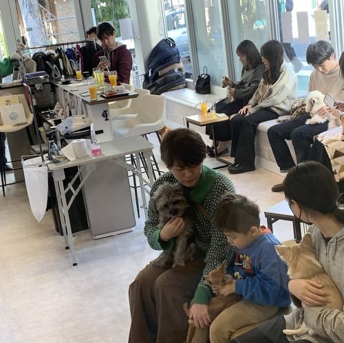 ワンちゃんと一緒にティータイムを愉しんだり、個性豊かなワンちゃんと遊んでいただけます♪